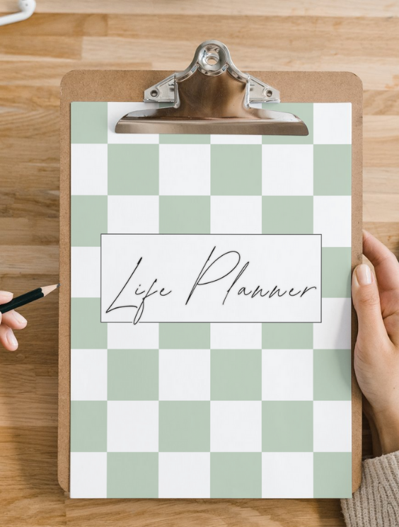 SAGE GREEN CHECKERED 60 PAGE LIFE PLANNER
